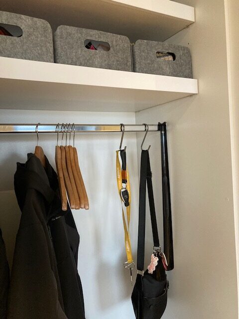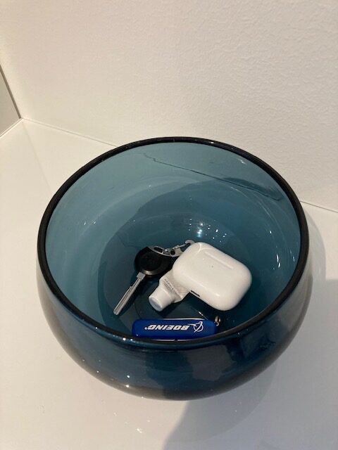 Miten tavaroille sitten tehdään oma paikka? Avaimille kannattaa etsiä VAIN yksi ainoa paikka, johon avaimet aina laitetaan. Luonnollinen paikka monille on eteisessä, koska usein on tarve laskea avaimet käsistään heti, kun aletaan riisumaan kenkiä ja takkia. Se voi olla kulho eteisen lipaston päällä, naulakko tai koukku eteisen seinässä tai miksipä ei ulko-oven sisäpinnalla. Jos sopivaa paikkaa ei tunnu eteisestä löytyvän, niin sen voi sijoittaa muuallekin, mutta tähän sisältyy sudenkuoppa, sillä avaimia ei saisi sisään tullessa laskea mihinkään muualle kuin omalle paikalle, muuten ne ovat taas kadoksissa. Paras paikka on eteisessä siitäkin syystä, että niitä luultavasti tarvitaan, kun seuraavan kerran lähdetään ulko-ovesta ulos ja jos avaimet ovat keittiössä, niin eteiseen pitäisi kulkea keittiön kautta, jotta avaimet tulevat mukaan. Sama pätee sateensuojaan, sille kannattaa etsiä luonnollinen paikka, josta se on helppo ottaa mukaan ja johon se on helppo palauttaa – pääasia, että paikka on aina sama. Tavaroiden paikoittaminen ei ole vaikeaa, kun käyttää hetken aikaa siihen, että miettii omia käytösmallejaan. Kun paikka on luotu, niin seuraa, miten sen käyttö arjessa onnistuu. Jos paikka ei tunnu luonnolliselta tai toimivalta, älä pelkää muuttaa sitä ja kokeilla jotain uutta, paremmin toimivaa.